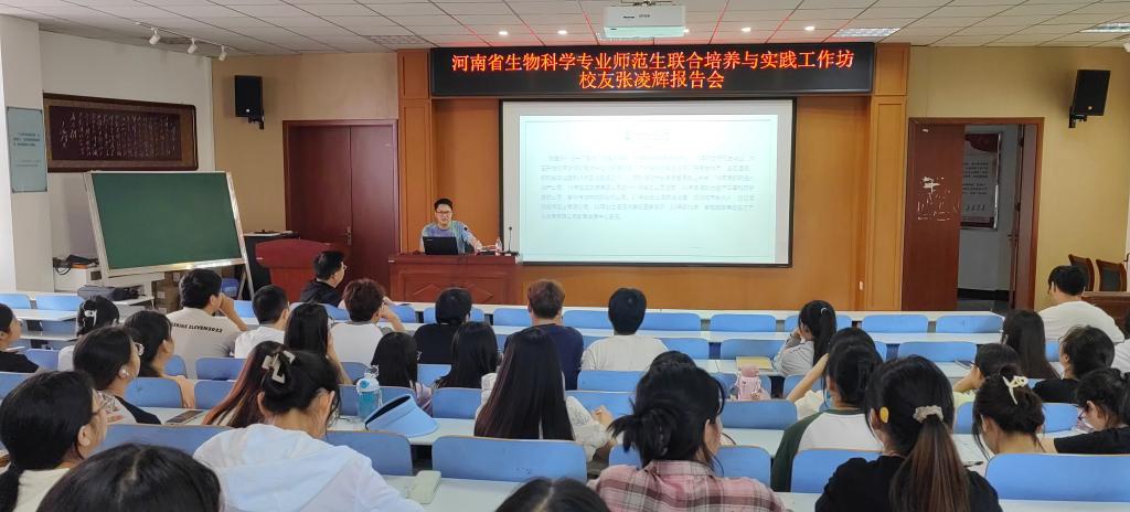 為激勵生物科學專業(yè)師范生生勤學踐行,讓同學們深入理解未來師范生就業(yè)的內(nèi)涵和成長途徑,5月31日下午,應(yīng)“名師引領(lǐng)——河南省生物科學專業(yè)師范生成長工作坊”的邀請,我院2010屆優(yōu)秀校友張凌輝在生物樓鐘秀大講堂舉行報告會。院長饒本強、教學秘書以及學院部分師生參加了報告會。報告會由院長饒本強主持。