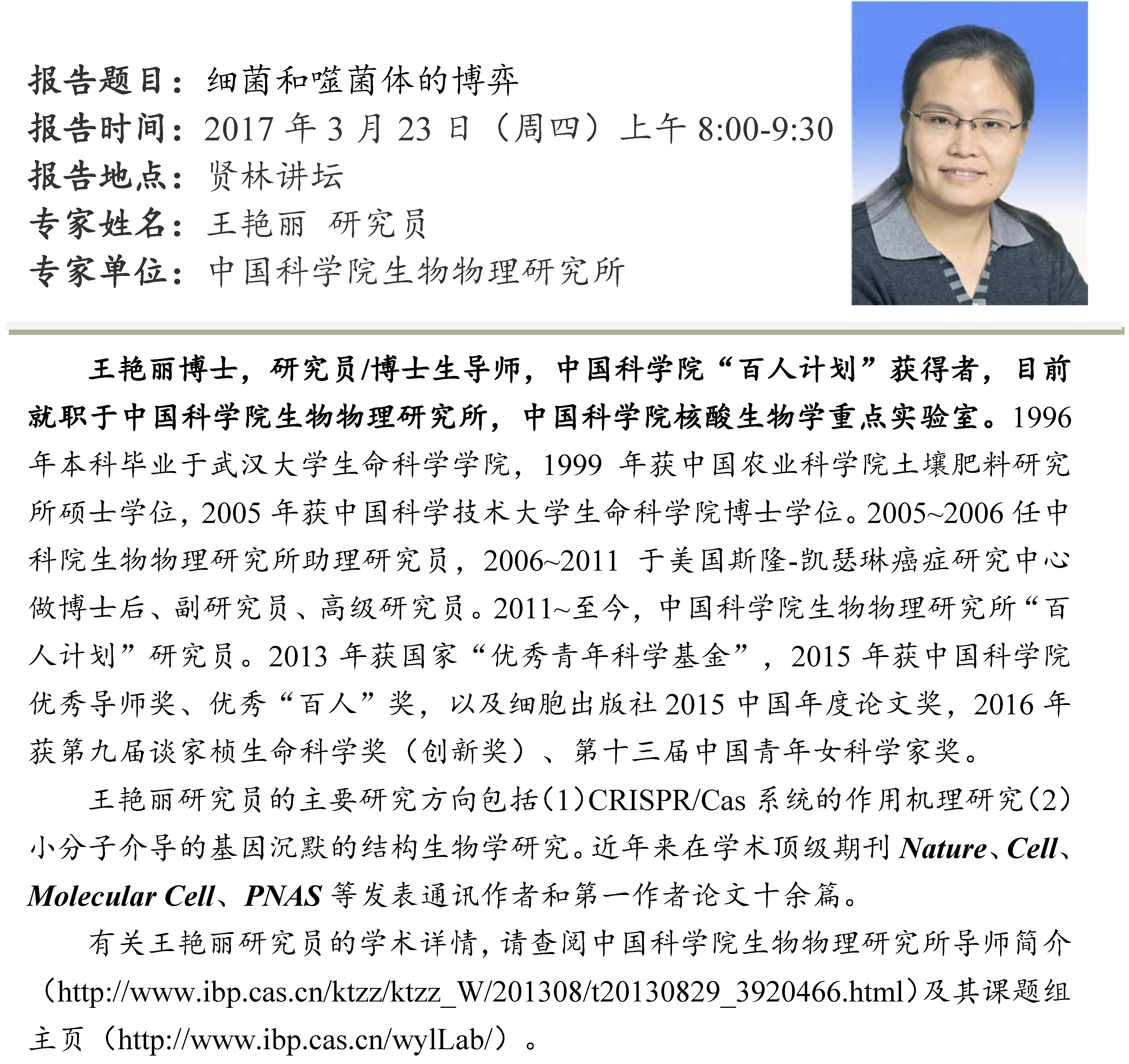 生物學(xué)前沿高端講座報告會預(yù)告(二)