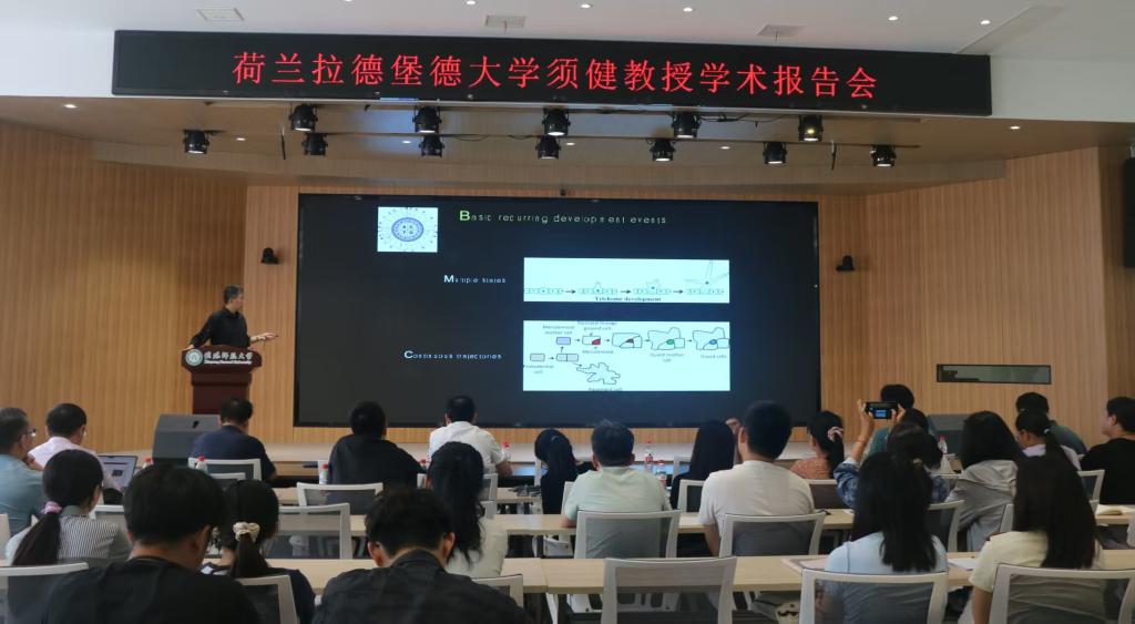 7月30日,應(yīng)生命科學(xué)學(xué)院邀請,荷蘭拉德堡德大學(xué)植物系統(tǒng)生理學(xué)系主任、講席教授須健在譚山書院博雅講堂,為我院師生作了題為“RootCellAtlas: Stress-development-regeneration”的前沿學(xué)術(shù)報告。報告會由我院院長饒本強(qiáng)教授主持。