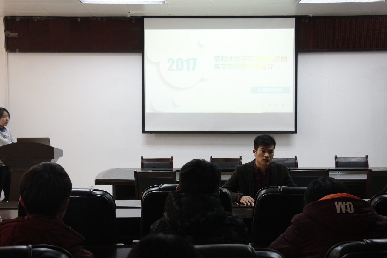 為進(jìn)一步做好學(xué)生資助及相關(guān)主題教育的工作,3月16日下午,我院于生物樓412會(huì)議室召開(kāi)了家庭經(jīng)濟(jì)困難學(xué)生資助政策知識(shí)宣講報(bào)告會(huì)。報(bào)告由我院資助工作專員孫太紅主持。