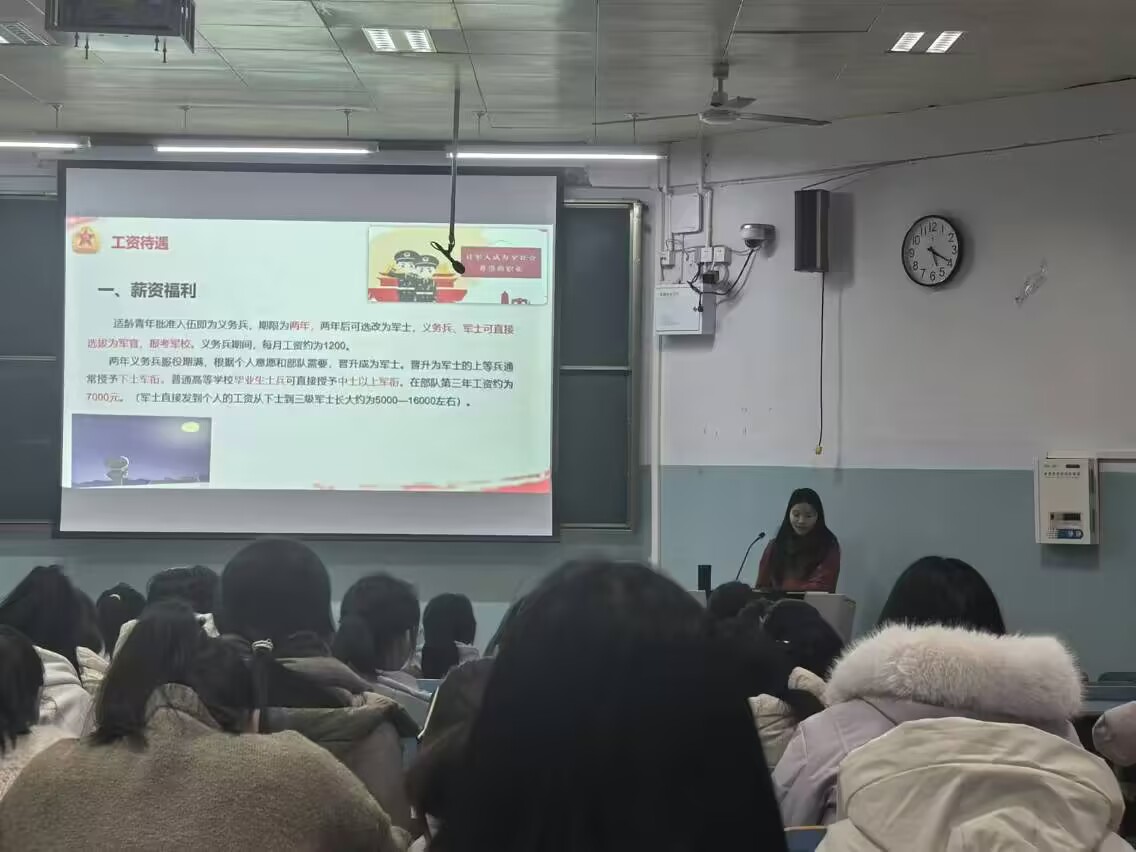 為深化我院同學對國防教育的認識,激發(fā)青年學子參軍報國的熱情,鼓勵他們積極投身國防事業(yè)。12月8日,我院在教九樓305教室舉行了征兵工作主題班會。此次班會由2024級輔導員洪瑞主持,2024級生物技術班,生物制藥班,生物信息班學生參加此次班會。