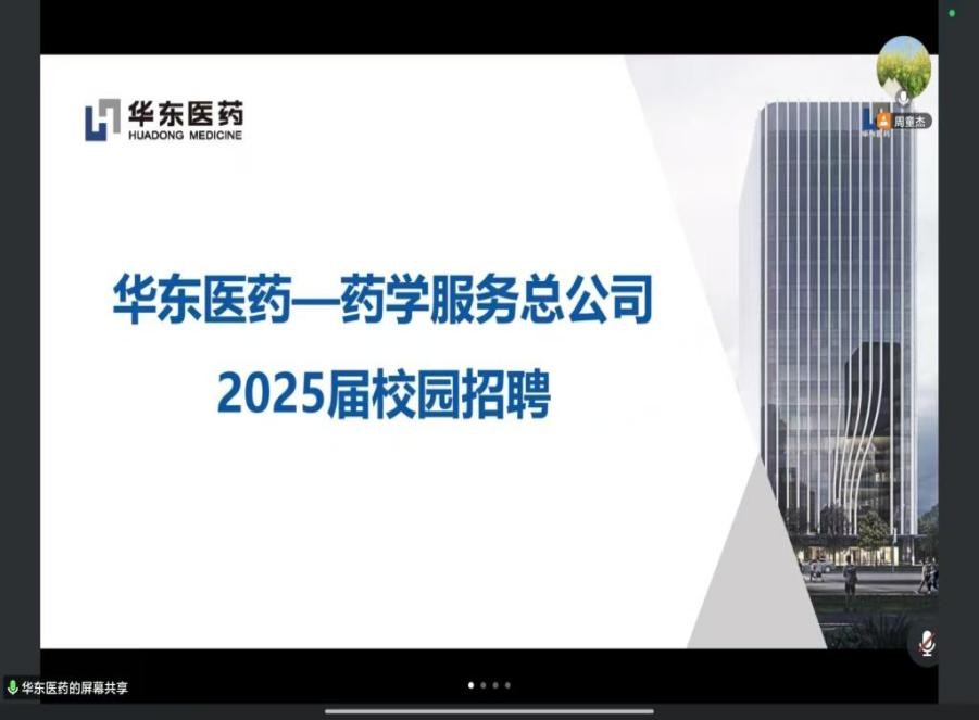為進(jìn)一步促進(jìn)應(yīng)屆畢業(yè)生高質(zhì)量充分就業(yè),使他們更好地了解醫(yī)藥行業(yè)就業(yè)市場(chǎng)。我院于3月28日成功舉辦華東醫(yī)藥股份有限公司線上招聘宣講會(huì),學(xué)院黨委副書(shū)記榮憲舉、就業(yè)秘書(shū)張博及2025屆畢業(yè)生近80人參加。