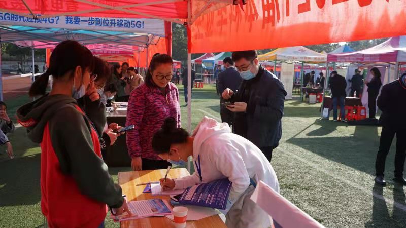 11月7日,由河南省教育廳、河南省大中專(zhuān)學(xué)生就業(yè)服務(wù)中心主辦,我校與信陽(yáng)高新區(qū)社會(huì)事業(yè)局承辦的河南省畢業(yè)生就業(yè)市場(chǎng)豫南分市場(chǎng)暨信陽(yáng)師范學(xué)院2021屆畢業(yè)生冬季雙選會(huì)于我校西操場(chǎng)盛大舉行,我院積極組織學(xué)子參加雙選會(huì)。院黨委副書(shū)記楊霽虹,就業(yè)秘書(shū)李敏親臨現(xiàn)場(chǎng),與就業(yè)單位以及應(yīng)屆畢業(yè)生進(jìn)行深入的溝通交流。