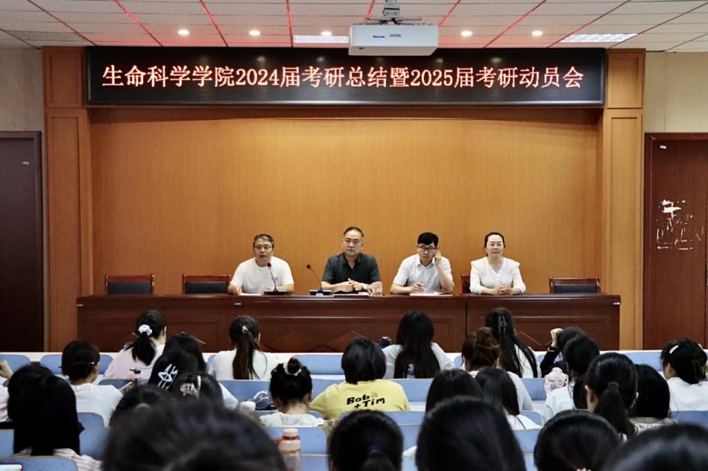 為進一步加強學(xué)習(xí)經(jīng)驗交流,堅定學(xué)習(xí)信念,明確考研目標(biāo),合理制定復(fù)習(xí)規(guī)劃,深化考研學(xué)生對研究生考試的進一步了解和認識。5月21日晚,我院于生命科學(xué)學(xué)院414報告廳舉辦2024屆考研經(jīng)驗交流暨2025屆考研動員會。會議邀請2024屆考研優(yōu)秀學(xué)長分享考研經(jīng)驗,學(xué)院黨委書記李剛、副書記榮憲舉,副院長荊勝利,2020級專職輔導(dǎo)員李敏、2021級全體學(xué)生及其他年級計劃考研的同學(xué)參加,會議由榮憲舉主持。