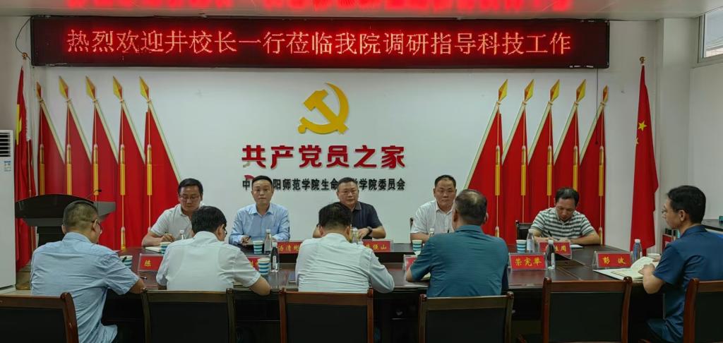 調(diào)研會(huì)上,李剛書記致歡迎辭并感謝井校長(zhǎng)及科學(xué)技術(shù)處領(lǐng)導(dǎo)到我院指導(dǎo)科技工作。饒本強(qiáng)院長(zhǎng)衷心感謝校領(lǐng)導(dǎo)和科技處同志對(duì)生科院科技工作的大力支持和悉心指導(dǎo),并圍繞學(xué)院近幾年國(guó)家基金申報(bào)和2025年國(guó)家基金申報(bào)工作計(jì)劃、平臺(tái)建設(shè)、科學(xué)成果獎(jiǎng)培育等科技工作情況做了匯報(bào),并就科技工作存在的問題與解決思路進(jìn)行了闡述。