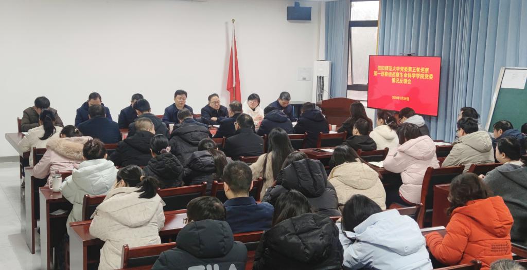按照校黨委巡察工作安排,1月29日上午,校黨委第一巡察組巡察生命科學(xué)學(xué)院黨委情況反饋會(huì)在敏思樓409會(huì)議室召開。校紀(jì)委書記、監(jiān)察專員、巡察工作領(lǐng)導(dǎo)小組常務(wù)副組長(zhǎng)李榮勝出席會(huì)議并就抓好巡察整改提出要求,校黨委第一巡察組組長(zhǎng)周經(jīng)兵代表巡察組反饋巡察意見,校黨委巡察辦主任王振海,校黨委第一巡察組副組長(zhǎng)李孝民,黨委宣傳部副部長(zhǎng)韓志宏,紀(jì)委、監(jiān)察專員辦公室第三監(jiān)督檢查室主任李莉,組織部干部管理科科長(zhǎng)任璽,第一巡察組全體成員,生命科學(xué)學(xué)院領(lǐng)導(dǎo)班子成員、全體教職工及離退休教職工代表參加會(huì)議。會(huì)議由生命科學(xué)學(xué)院黨委副書記榮憲舉主持。