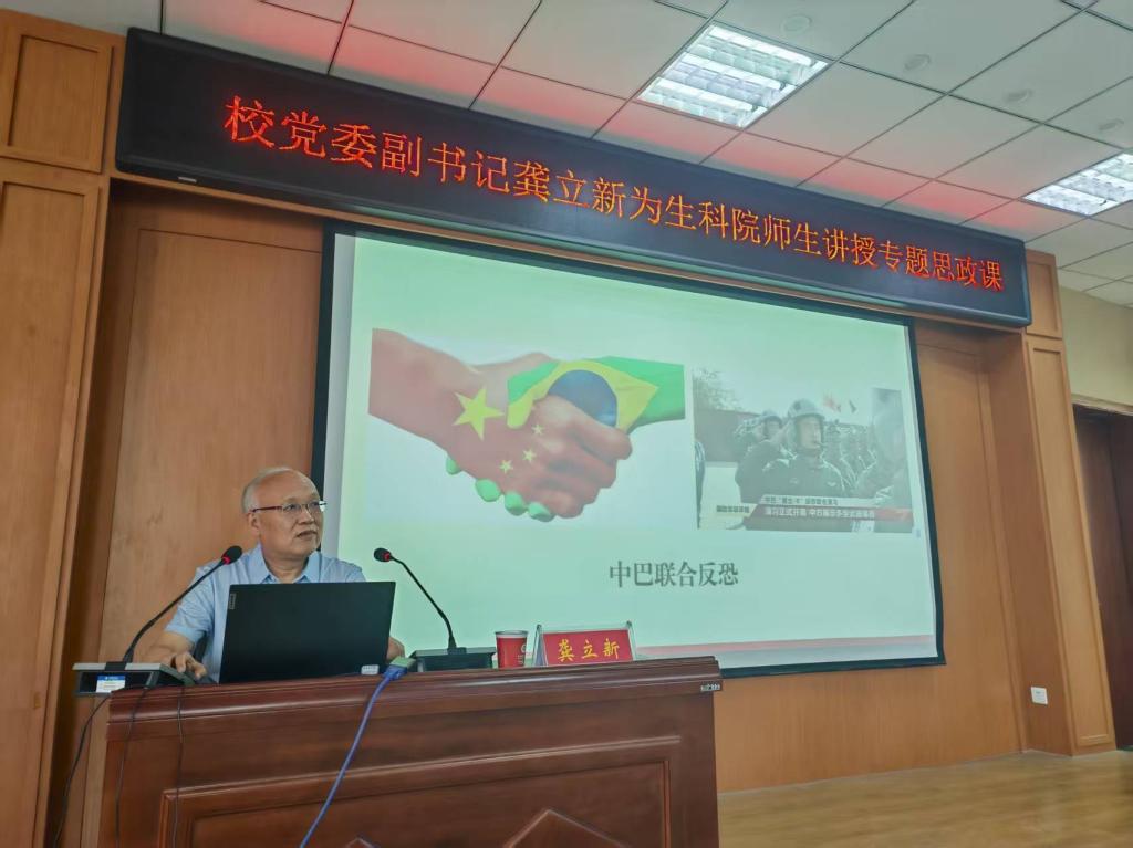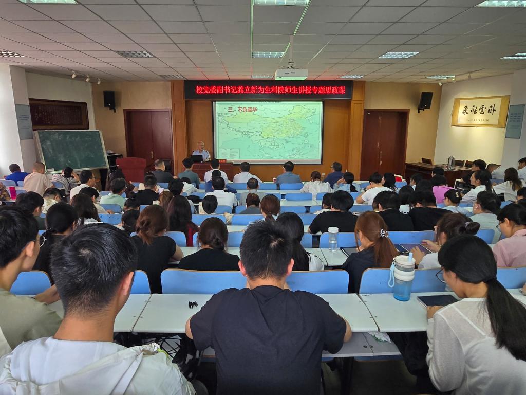 6月3日,校黨委副書記龔立新在生命科學(xué)學(xué)院414報告廳為我院師生講專題思政課。學(xué)院全體黨員、入黨積極分子代表等200余人參加了思政課學(xué)習(xí)。