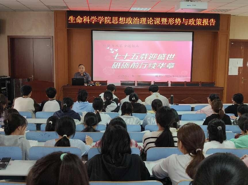 10月10日下午,學(xué)院黨委書記李剛副教授走進思政課課堂,為2023級生物科學(xué)1班、2023級生物技術(shù)班及2023級茶學(xué)班的學(xué)生講授題為“七十五載迎盛世 砥礪前行續(xù)華章”的思想政治理論課暨形勢與政策報告。