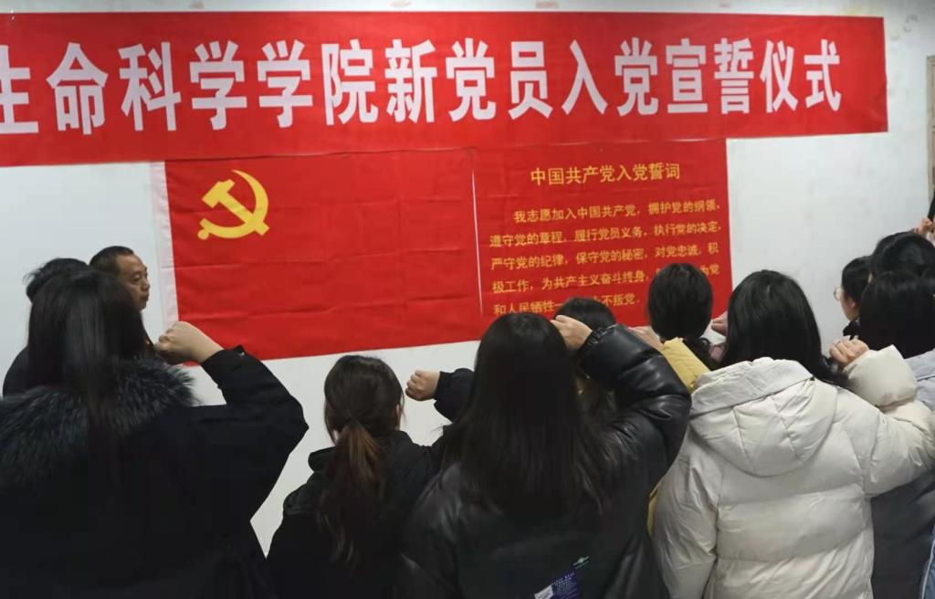 會(huì)議伊始,全體起立,奏唱《國(guó)際歌》。院長(zhǎng)袁紅雨宣讀了校黨委組織部接收新黨員的便函。隨后,全體新黨員面對(duì)黨旗,在康菡的帶領(lǐng)下進(jìn)行宣誓。