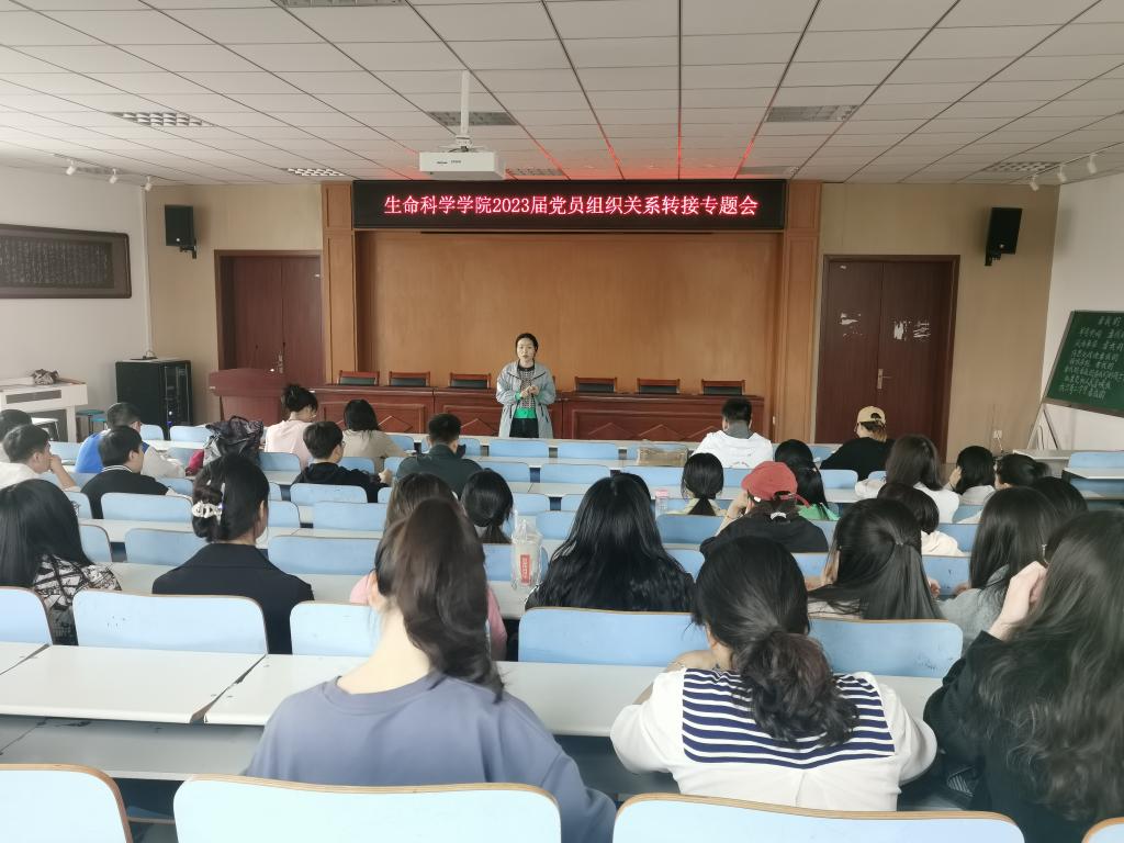 為進(jìn)一步規(guī)范黨員組織關(guān)系轉(zhuǎn)接工作程序,強(qiáng)化黨員的責(zé)任意識(shí),5月10日,我院在生科樓414召開(kāi)2023屆黨員組織關(guān)系轉(zhuǎn)接專題會(huì)。會(huì)議由專職組織員楊娟娟主持,全體畢業(yè)生黨員參加。